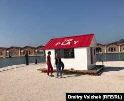 Русские темы возникают в самых неожиданных местах. Например, в павильоне Македонии, где выставлен кабриолет, покрытый советскими плакатами. На экране люди в золотых масках атакуют эту машину с номерным знаком James Bond, стремительно приклеивают к ее бокам плакаты, а потом раздают леденцы в виде красных петухов. Все это называется "Красный карнавал" и однозначной интерпретации не поддается.