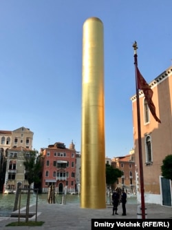 Скульптуры Хёрста стоят не только в музейных пространствах, но и на берегах Гранд-канала. А из его вод поднимаются две огромные белые руки и поддерживают здание отеля Ca' Sagredo: это скульптура Лоренцо Куинна "Опора". На другом берегу стоит "Золотая башня" Джеймса Ли Байерса (1932–1997), жившего в Венеции. Двадцатиметровая скульптура выполнена из позолоченного металла и находится под надзором полиции. Байерс объяснял, что это колоссальный маяк, мост между небом и землей, который объединит человечество, но больше всего башня похожа на золотой фаллос.