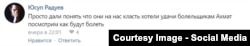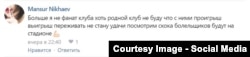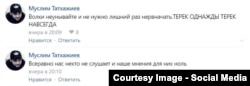 Некоторые из фанатов попытались отправить Магомеду Дадудову сообщения с хештегом #НАШЕИМЯТЕРЕК в "Инстаграме", на что получили от Лорда ответы такого содержания (эти скриншоты были присланы в редакцию Радио Свобода пользователями "ВКонтакте", их также можно найти в группах болельщиков "Терека"):