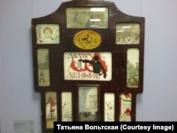 – Это вологодское кружево, известное на весь мир. Работа 1937 года – видимо, сделана к 20-летию революции. Это "Волкружсоюз" в Вологде, тонко сделанный портрет на коклюшках, у них есть еще подобные работы – кружевные Ленин и Сталин, например.