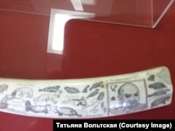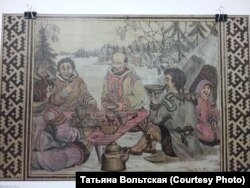 – Это копия изображения из Ямало-Ненецкого окружного музейно-выставочного комплекса имени Шимановского в Салехарде. Мне коллеги из этнографического музея рассказали, что они видели картину "Ленин на Ямале" – и правда, мне прислали оттуда еще несколько работ, где Ленин – в традиционном пейзаже среди ненцев, он главный гость. Конечно, он никогда не был на Ямале, но так традиционная культура приближает к себе вождя, делает его своим важным гостем.