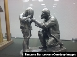 Под конец Михаил Клименко останавливается у экспоната, который как будто подсвечивает его слова другим, совсем не радостным светом. Это маленькая скульптура – Ленин, утешающий плачущего мальчика. По словам Михаила, считается, что этот мальчик – сын Емельянова, хозяина шалаша, где скрывались Ленин с Зиновьевым. Так вот, сам Емельянов, спасший вождя пролетариата, прошел через лагеря, а двое из его сыновей в годы Большого террора были расстреляны, в том числе тот самый Коля Емельянов, которого – видимо, заранее – утешает бронзовый Ленин.