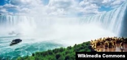 Марина Ефимова: Американский художник и мыслитель Эдвард Хоппер сказал как-то про своих соотечественников: "Американцы могут все, кроме одного – им не по силам оставить что-то в покое". В большой степени это относится к освоению и коммерциализации Ниагарского водопада. В этом году отмечаются сразу два юбилея – столетие висячего железнодорожного моста через Ниагарские пороги и 170-летия со дня первой попытки спуститься по Ниагаре на кораблике, имеющем на борту в качестве пассажиров медведя, бизона, двух лисиц и двух гусей. Выжил в этом переходе один гусь. Водопад на реке Ниагара, соединяющий озера Эри и Онтарио, по пропускной способности и потенциальной энергии занимает третье место в мире, а по высоте и вообще 49-е, то есть, как говорится, не бог весть что, если не считать одной особенности – из всех водопадов мира именно к Ниагаре стекалось больше всего зрителей, писателей, художников, фотографов, журналистов, ученых, дельцов, преобразователей и вообще тех, кто хотел схватиться с водопадом в одиночку.