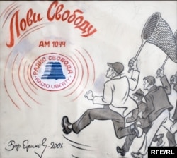 Все эти карикатуры – монохром, черно-белые. Две новые – цветные. Группа энтузиастов с радостно-сосредоточенными лицами мчится, размахивая сачками. Над ними – лозунг: "Лови Свободу". Ниже частота: АМ 1044. Подпись та же, знакомая миллионам: "Бор.Ефимов". Дата – 2001. На другой – вдохновенный юноша, тоже с сачком, тоже ловит "Свободу". Здесь дата точнее – 28 сентября 2001 года. 101 год – это больше века. В мире столь больших, почти не поддающихся осмыслению чисел – количество становится качеством. Художник – свидетелем. Идеология – летописью. Политика – историей".