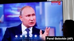 На этом тема Украины не исчерпалась: зрителям показали видеорепортаж о беженцах из Донецкой и Луганской областей, которые поселились под Ростовом-на-Дону и испытывают трудности, поскольку у них нет российского гражданства. Путин пообещал упростить процедуру выдачи гражданства тем, кто "считает себя частью русского мира", а чуть позже пообщался в эфире еще с одной гражданкой Украины с такой же просьбой.