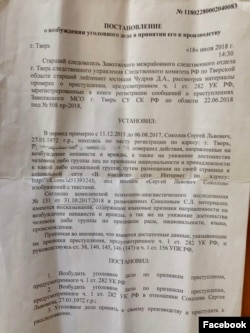 СК РФ по Тверской области возбудил уголовное дело по ч.1 ст. 282 "Возбуждение ненависти либо вражды, а равно унижение человеческого достоинства" на 46-летнего Сергея Соколова. По версии следствия, посты и картинки, которые Соколов разместил на своей странице в социальной сети "ВКонтакте", содержат "языковые признаки направленности на возбуждение ненависти и вражды, а также на унижение достоинства человека либо группы по признакам расы, национальности, языка, происхождения".