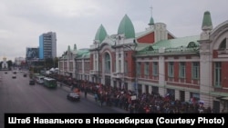 Около тысячи человек продолжают шествие по главной улице Новосибирска, Красному проспекту, сообщают Сибирь.Реалии.
