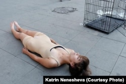 Выставка отменена, а перформанс Катрин Ненашевой продолжается. Клетка путешествует по Москве. 17 сентября полиция на Арбате прервала перформанс, и художница провела ночь в отделении.