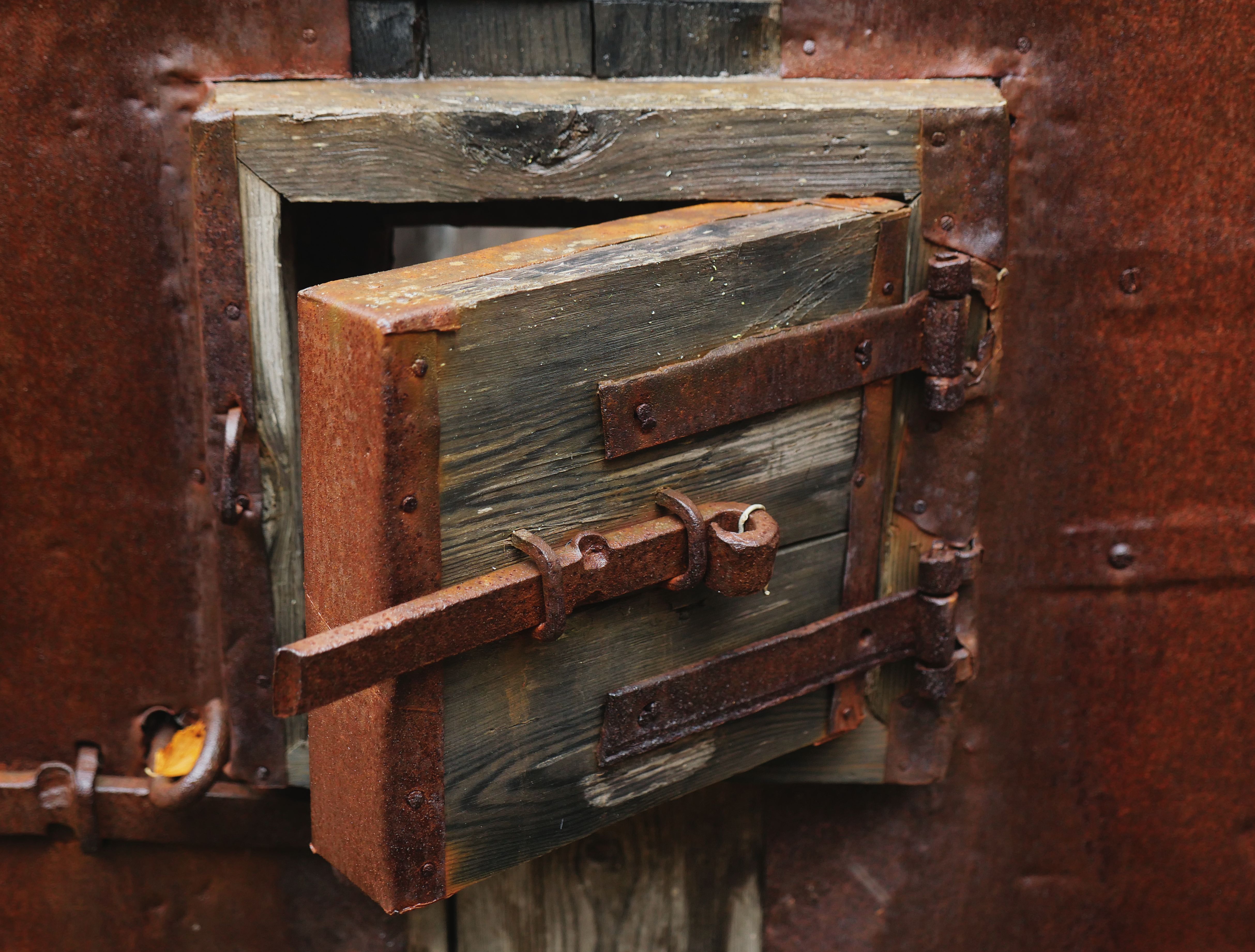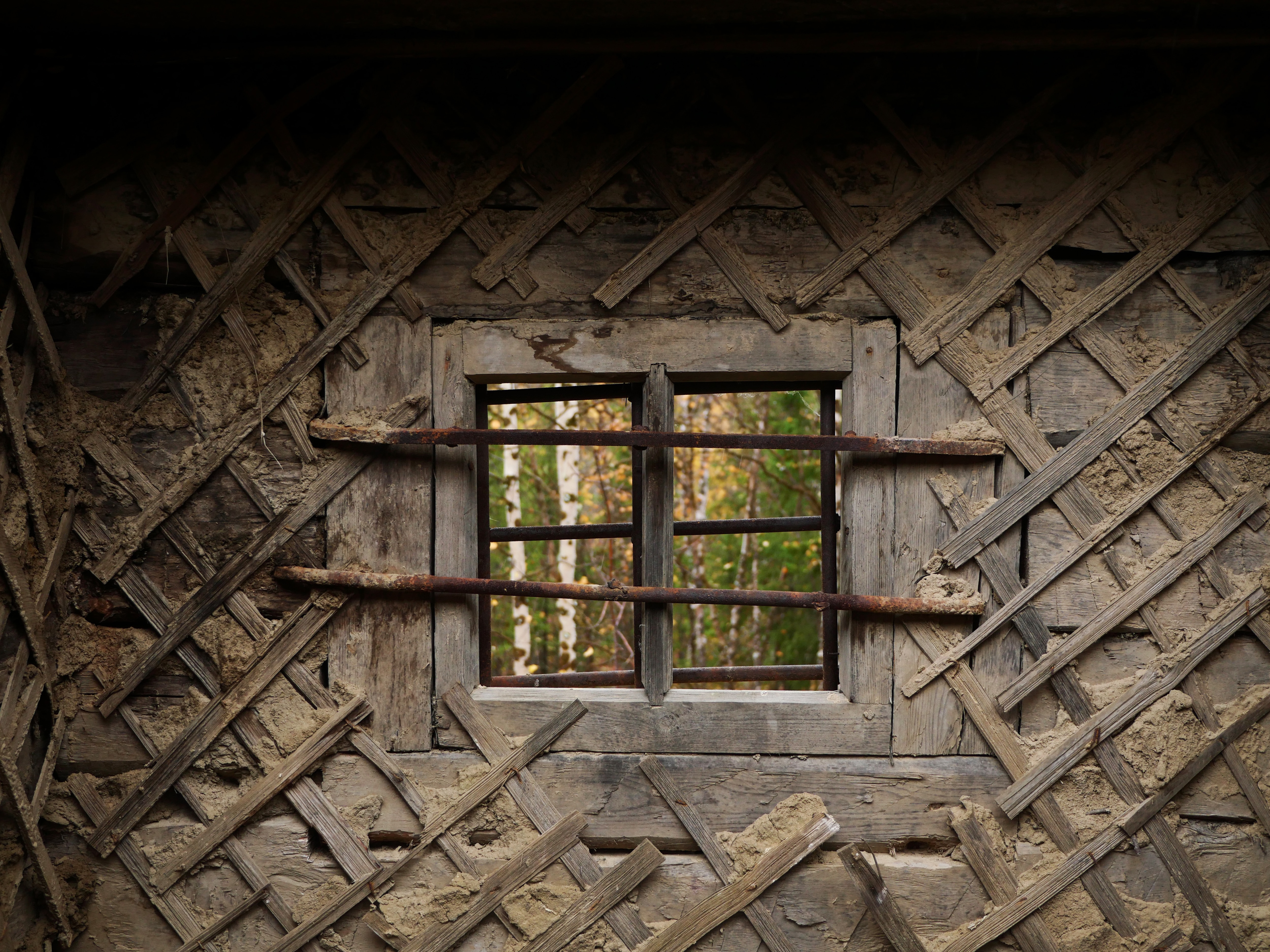 Внутри – остатки нар, на которых когда-то спали заключенные. На окнах решетки.