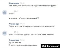 Выпускница колледжа Александра, с которой поговорило Радио Свобода, рассказала, что Владислав Росляков был участником "террористической группы". На уточняющий вопрос она ответила, что речь идет об обычной банде, которая "все просчитывает и потом нападает". Но все это, по словам Александры, "только слухи".