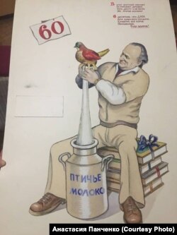 Любовь Константиновна Чеканова, мама Анастасии и сноха Петра Чеканова (отец Анастасии, сын художника, недавно умер) вспоминает, что действительно видела такие конфеты. Увы, найти оригинальную упаковку "Праздничного салюта" Радио Свобода не удалось: в корпорации Nestle, которой принадлежит львовская фабрика "Свиточ", нам рассказали, что музея на заводе нет, как нет связи и хоть с кем-нибудь из ветеранов производства, кто мог бы помнить события 50-летней давности. Возможно, в безуспешности попыток найти настоящую коробку "Салюта" сыграл свою роль и ограниченный тираж конфет, многие из которых к тому же могли попасть не в обычные магазины, а на столы советской партийной номенклатуры и других "избранных": "Птичье молоко" всегда было в СССР дефицитом. Кстати, поздравляя Чеканова с 60-м днем рождения, его коллеги обыграли в нарисованном по этому случаю шуточном плакате название именно этого лакомства.