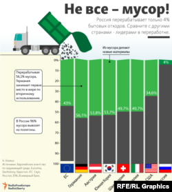 Работа в этом направлении ведется пока в основном общественными активистами, которые агитируют за то, чтобы стекло, бумага и пластик собирались в отдельные контейнеры. Подобная практика уже давно существует в странах Европы, где несоблюдение правил сортировки мусора может повлечь административную ответственность. В Бельгии, к примеру, в стоимость специального пластикового мешка для отходов уже вложена стоимость его транспортировки. Причем для каждого вида отходов есть мешок особого цвета.