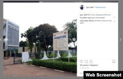 - 29 июля. Игорь Байбаков публикует в Инстаграме несколько фото и видео из столицы Центральноафриканской Республики, города Банги. На этих фотографиях запечатлено, в числе прочего, здание правительства ЦАР.