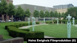 Хайнц Эмигольц много лет снимает произведения лучших архитекторов-модернистов. На этот раз он выбрал нечто другое – строительство бездарного объекта, новой художественной галереи в Мангейме. Безликий и безобразный проект, похожий на мебельный магазин в Подмосковье, безнадежно уродует архитектурный комплекс Фридрихсплац с башнями, фонтанами и старым музеем, который новое мертвое здание полностью заслоняет. Никаких комментариев, но все понятно и так. Эмигольц снимал все этапы строительства, продолжавшегося 5 лет – от сноса старого музея до открытия нового – и наблюдать за стройкой так же интересно, как за любовной драмой или поисками преступника. Да это и есть преступление против архитектуры.