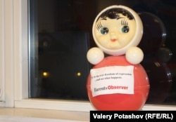 "Попробуй перевернуть свободу выражения... и увидишь, что происходит", – напечатано на листке бумаги с названием норвежского издания The Independent Barents Observer, приклеенном к русской кукле-неваляшке. Она стоит на окне редакционного кабинета и считается у журналистов издания его талисманом.
