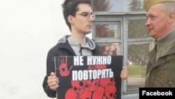 В День Победы Александр Юборс вышел в центр Ярославля на одиночный пикет против пропаганды милитаризма. На плакате, который держал в руках Александр, было написано “Занимайтесь любовью, а не войной”. 20-летний активист написал на своей странице в социальной сети “ВКонтакте”, что решил выйти на пикет после того, как недавно пересмотрел свой альбом школьных фотографий. “И увидел в нём нарисованные танки, истребители, солдат на марше. Подпись: "С Днем Победы". Интересно, а почему нас не учили рисовать оторванные ноги, вывернутые наизнанку животы, разбитые черепа с разбросанными повсюду мозгами? Это ведь является неотъемлемым атрибутом войны, не так ли? Так почему же не учили? Почему? Задумайтесь”. Подробнее о своих взглядах антимилитарист рассказал Радио Свобода.