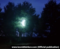 – Да, действительно. Потому что вся серия "Частная Луна", которая там представлена в виде лайтбоксов и в виде месяца, светящегося на первом этаже, получилась из картины Рене Магритта "16 сентября 1956 года". Там дерево, стоящее одиноко на опушке леса, и в кроне запутался месяц. Эта невероятная картина мне всегда нравилась своей поэтичностью и простотой, ясной метафорой. Я хотел ее представить в виде реальности, мне бы хотелось войти в эту картину. Я сделал эту инсталляцию только для того, чтобы почувствовать себя внутри картины Магритта. Первый раз она была показана на фестивале современного искусства "Арт-Клязьма" в 2003 году. Я изготовил эту Луну в какой-то рекламной фирме. На меня смотрели удивленно, говорили: а что мы напишем на ней, что это будет? Я говорю: это просто для праздника, театра. Тогда еще не было диодов, а были лампы дневного света. Я ее привез в парк где-то за Химками, повесил на сосну. Первая фотография как раз там появилась, дальше уже путешествия, и я надеюсь, что это не закончится. В Париже эта серия оказалась очень к месту. Так получилось, что я на этой выставке единственный, кто отвечает за современное российское искусство.