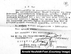 Профессор Нойфельдт-Фаст знает имя человека, который убил его деда. После революции 2014 года архивы советских спецслужб в Украине открыты, и папку с делом НКВД на Франца Брейля удалось скопировать. Документов немного: в протоколе допроса Брейль признает себя виновным в том, что был кулаком, проводил контрреволюционную агитацию среди немцев и в случае войны готов был сражаться с Красной армией. Следуют показания двух свидетелей, подтверждающие эти выбитые пытками признания, лаконичное обвинительное заключение, приговор тройки и акт о приведении приговора в исполнение, подписанный лейтенантом госбезопасности Наумом Турбовским.