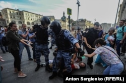 – Люди стояли в Брюсовом переулке. Никто не совершал противоправных действий, никаких провокаторов я не видела. Я была в первом ряду, прямо перед росгвардейцами. Росгвардия была без дубинок, это были очень молодые ребята, которым явно не хотелось никого бить, давить. Им было неловко обижать и унижать беззащитных людей. Их отвели в сторону, и им на смену привели отряд ОМОНа. Они были без дубинок, но в масках. Под маской видны только глаза, и они были совсем другими (по сравнению с росгвардейцами. – РС). Никаких провокаций в их адрес не совершалось вообще. Видимо, так как не удавалось уговорить митингующих уйти, позвали отряд уже с дубинками. Я спросила одного из омоновцев: "Неужели вы будете нас сейчас бить?" Омоновец ответил мне гробовым молчанием. В какой-то момент они стали устраивать в толпе страшную давку. Получается, угроза Собянина, что на этой акции вы не будете в безопасности, проявила себя полностью, но только со стороны правоохранительных органов. Именно они создавали опасность для здоровья и жизни людей.