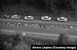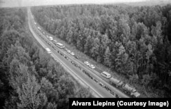 Для 36-летнего Айварса Лиепинса, который тогда работал в газете, издаваемой антисоветским политическим движением Народный фронт, возможность сфотографировать эту цепочку людей с воздуха была необыкновенным подарком. Но добраться до аэропорта Спилве в нескольких километрах к северу от Риги за 15 минут было нереально.