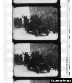 – Нет. Если бы какая-то информация об этом фильме была бы известна, ее бы давно использовали историки кино в своих сочинениях. Фильм был уникален по многим параметрам, в том числе по такому параметру, как его публичный показ. Он должен был быть показан одновременно в нескольких городах России большому количеству публики. Очевидно, его показывали не в кинотеатрах, а на открытой площади, чтобы публики было как можно больше. Как только информационный повод прошел, фильм на экранах больше не появлялся, но несколько лет циркулировал в так называемых агитпоездах, которые ходили по советской России во время гражданской войны. Мы знаем по списку фильмов, которые находились в фильмотеке поездов, что различные его части все время показывали, а иногда показывали целиком. Самая популярная часть была "Мозг советской России" с портретами политических деятелей. И это понятно, ведь не было телевидения, центральные газеты перестали выходить или не достигали провинции, и люди в этом фильме смогли вживую увидеть тех персонажей, о которых знали только из сарафанного радио, из народной волны. Меня часто спрашивают, почему в фильме так много статичных планов. Я говорю: чтобы зрители могли прочитать надпись и рассмотреть человека, которого им показывают. Ведь они никогда не видели живого Троцкого, Свердлова или Ленина. В отзывах, которые нашли историки, мы видим мнения простых зрителей, которые удивлялись: вот Ленин, гляди-ка, как пальцем тычет. Их интересовал сам факт появления живьем этих людей. Осенью 1918 года уже началась гражданская война, голод и промышленная разруха, перестали выходить газеты и журналы. Поэтому в обстановке 1918–1920 годов, конечно, никаких рецензий и отзывов в прессе найти нельзя. Документальные фильмы очень быстро сходят с экранов, потому что утрачивают свой информационный повод. А потом Троцкий сделался фигурой нон грата, упоминать этот фильм стало опасно. В каких-то анкетах в 1920-е годы этот фильм еще упоминается, а в 1930-е годы уже нет. Соответственно, его не могли смотреть историки. Он сохранился в архиве, но был расчленен на различные фрагменты, поэтому иногда мы наблюдаем в исторических документах описание каких-то фрагментов этого фильма. Но уже историки 1930-х годов не понимали, что они смотрят, не понимали, что это фрагменты "Годовщины революции". Конечно, идея воссоздания этого фильма жила в сознании историков. Виктор Листов, известный знаток документального кино, еще в 1967 году пытался собрать этот фильм, но не было его точного описания. Поэтому потребовалось ждать еще 50 лет прежде, чем такое описание нашлось и фильм можно было целиком воссоздать.