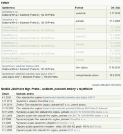 Фирма Якимовой, DemaStar s.r.o., находится по тому же адресу, что и компания Удодова Avrora Capital s.r.o.