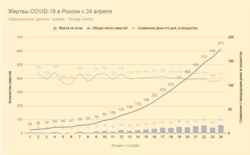 По состоянию на 24 апреля в России зафиксировано около 70 тысяч инфицированных COVID-19, а умерли, по официальным данным, 615 человек. Если верить этой статистике, в России от коронавирусной инфекции умирает намного меньше людей, чем в большинстве стран, уже побывавших на этом этапе эпидемии. Вместе с тем есть сообщения о том, что пациентам, умершим после тяжелой коронавирусной инфекции, в свидетельства о смерти вписывают другие заболевания. Так произошло со второй же умершей от COVID-19 в России женщиной: её сначала включили в коронавирусную статистику, но почти тут же исключили, заявив, что пациентка умерла от оторвавшегося тромба.