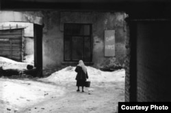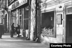 Он очень много ездил по Украине. И вот этого у него много. Он выбирал типичные ситуации образа жизни советского человека. Он в квартиры не заходил, не мог, а кроме того, он был фотографом архитектуры. Поэтому абсолютное большинство его фотографий сделаны на улице, на фоне домов, на фоне оформления улиц. Человек у него часть города. Он выбирал не эстетические моменты, а выбирал социальные моменты: очередь; появилась американская машина – он фиксирует толпу возле этой машины; продали селедку и выливают маринад на улицу; грязная подворотня и идет несчастная женщина. Может, она и не несчастная, но в окружающем ужасе она выглядит беспросветно. С другой стороны, и жизнь беспросветна в этой подворотне с надписью "Слава КПСС".