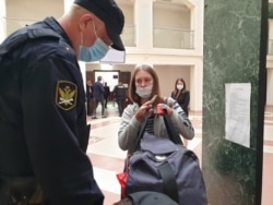 Светлана Прокопьева на входе в здание суда, с ней сумка с вещами - на тот случай, если приговор будет реальным