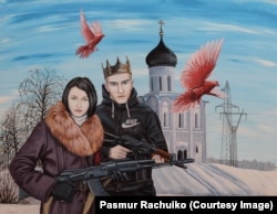 Пасмур Рачуйко родился в 1986 году в Ростове-на-Дону, учился в Петербурге, теперь живет в Тбилиси. Его работы населены персонажами тревожного российского мира: омоновцами и гопниками, недобрыми овчарками и ангелами из панельных трущоб, котиками и мертвецами. Пасмур Рачуйко увлечен не только живописью, но и перформативным проектом "Дикий корм": поиском дикорастущей пищи, за которую не нужно платить. Пасмур говорит, что эти два его занятия объединены терапевтическим стремлением исцелить рану, но не готов назвать имя злодея, который ее нанес.