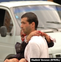 Больница – единственное, наверное, место во всём этом хаосе, где царил порядок. Вход охраняют автоматчики, но через него никто и не пытается прорваться в палаты, собравшиеся возле больницы люди в шоке и истерике, но из последних сил всё же держат себя в руках. Вышедшие на свежий воздух покурить-подышать медики говорят, что сейчас у них больше 200 человек: "Раны в основном минно-взрывные, осколочные, есть пулевые, ожоговые, практически все в шоке. Ещё примерно 400 увезли в больницы Владикавказа".