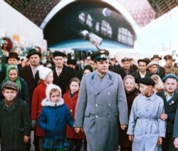 Первый космонавт Земли Юрий Алексеевич Гагарин. Кадр из фильма "10 лет космической эры"