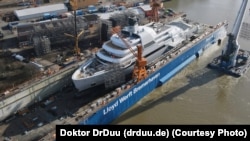 О строительстве яхты, цена которой (без отделки) может достигать полумиллиарда долларов, и о том, что она предназначается для Абрамовича, было известно еще несколько лет назад – однако только недавно на судостроительной верфи Lloyd в немецком Бремерхафене с яхты убрали леса, что позволило фотографам и пилотам дронов запечатлеть ее во всей красе.