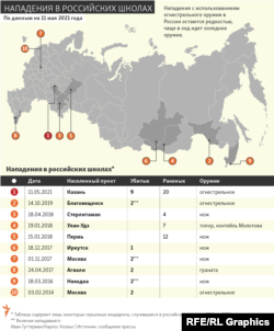 В последние годы в России произошёл ряд нападений с использованием оружия в школах – как правило, их организовывали ученики или бывшие ученики.