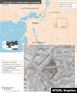 В Казани во вторник не менее девяти человек, в том числе семь детей, были убиты в результате стрельбы в гимназии №175 на улице Джаудата Файзи на восточной окраине города.