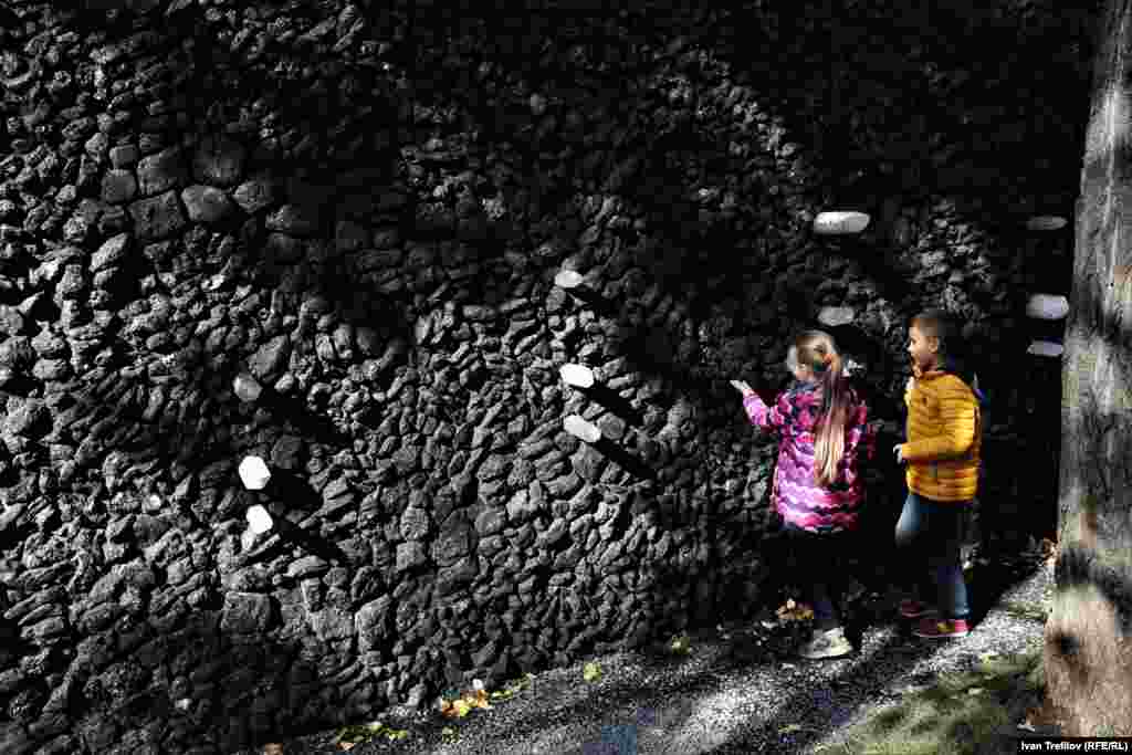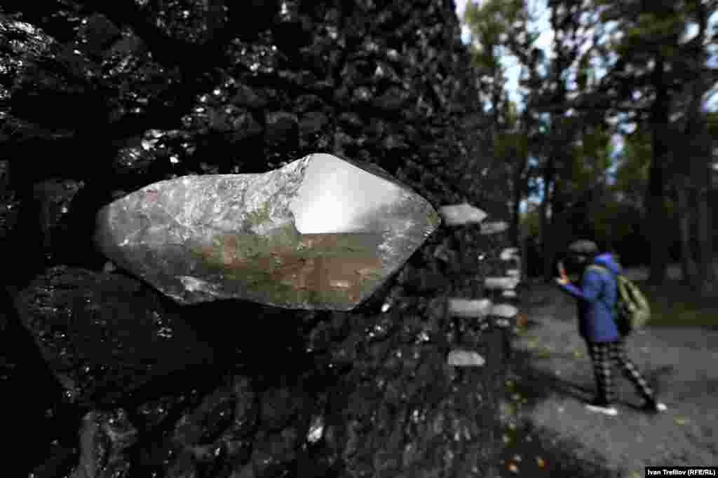 "Кристальная стена плача" достигает в длину 40 метров, а ее высота – 3 метра. Она сделана из антрацита и расположенных на разной высоте кристаллов кварца, привезенных из Бразилии. По замыслу автора, чтобы почувствовать их энергию, необходимо встать перед стеной, прислонившись головой, сердцем и животом к кристаллам, сформулировать вопрос, который волнует, и поразмышлять над ним.