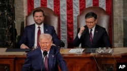 Говоря о своей экономической программе, президент Трамп пообещал американцам сократить налоги и восстановить промышленное производство в Соединенных Штатах с помощью импортных тарифов, которые, как он сказал, уже заставили несколько ведущих международных концернов развернуть производство в США.