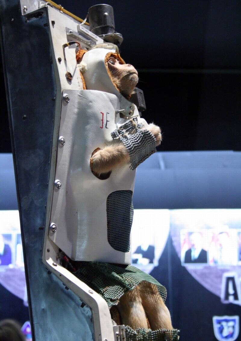31 января 1961 года в космос слетал шимпанзе Хэм. В отличие от макак, которых, как правило, усыпляли на время полета, Хэм не только оставался в полном сознании, но и был обучен по световому сигналу дергать рычаги и нажимать в определенной комбинации кнопки в обмен на банан; если он ошибался, получал чувствительный удар током через электроды, укрепленные на подошвах нижних конечностей. Бедный Хэм не подозревал, что коварные хомо сапиенс не наладили как следует свою технику: как он ни старался, какие рычаги ни дергал – его било током, а банан ни разу не достался. Капсула с Хэмом упала в Атлантический океан в 130 милях от расчетной точки. После падения она разгерметизировалась, стала тонуть. Бедняга Хэм был ни жив ни мертв, когда его наконец нашла поисковая команда. Тем не менее главную свою задачу он выполнил - доказал, что астронавт в космосе может не просто лежать мешком в своем кресле, но и выполнять осмысленные операции. Оставалось сделать последний шаг: посадить на место обезьяны человека.