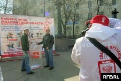 Перед началом основной акции - выходом на улицы для агитации москвичей - молодежь разогревается рэпом и народными танцами