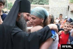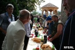 Владыка Андриа на празднике Рождества БогородицыВладыка Андриа родился в Абхазии, воевал там, но после войны принял сан, стал священником. Я привез ему в подарок от сухумцев, живущих в Москве, книгу «Православные храмы Абхазии». Появилась возможность с ним познакомиться и взять интервью. Владыка пообещал принять меня еще раз во вторник, а сейчас (то есть, в воскресенье), после службы и праздничной литургии (21 сентября – Рождество Пресвятой Богородицы) пригласил к столу. В этот день также, по древней грузинской традиции, имеющей дохристианское происхождение, в жертву приносятся животные, а мясо раздается неимущим.