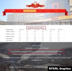 На сайте отеля "Калипсо" сейчас невозможно забронировать номер ни на одну из дат в календаре. В онлайн-чате на сайте гостиницы Радио Свобода ответили, что продажи на 2023 год закрыты, не назвав причину из-за "отсутствия информации от собственника".