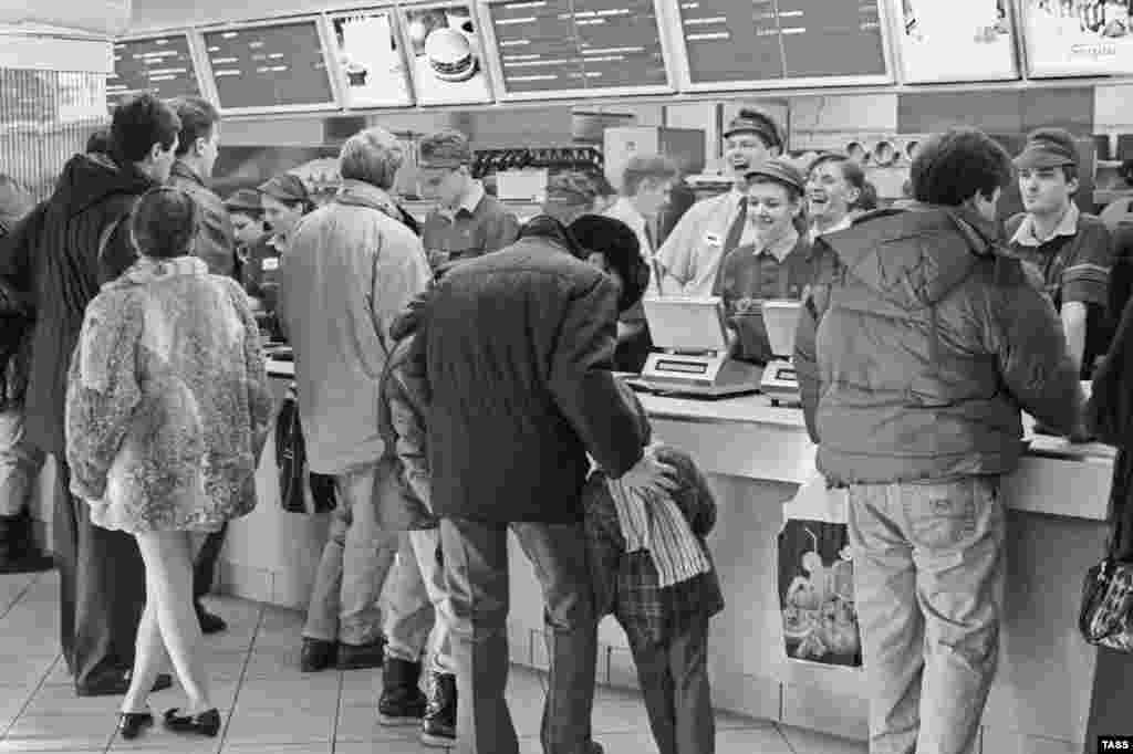 Не смущали даже весьма высокие цены. "Биг Мак" стоит 3,5 рубля. На эти деньги можно было месяц ездить на общественном транспорте. А средняя зарплата составляла 150 рублей.