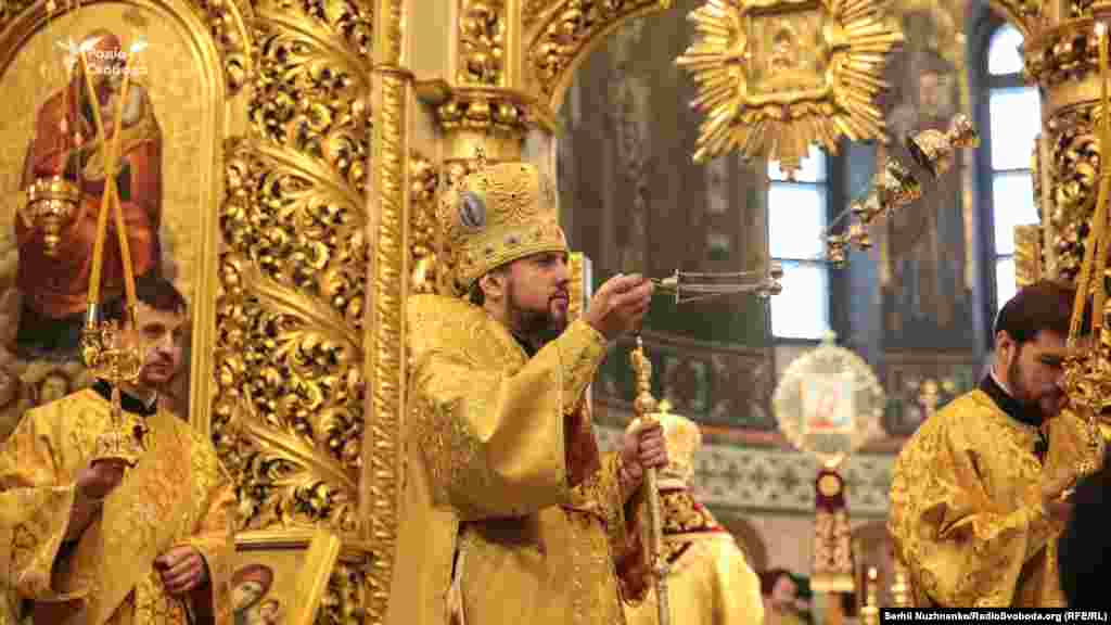 Митрополит Киевский Епифаний во время первой литургии после голосования на объединительном соборе в Киеве