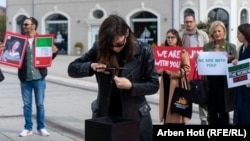 Косово, Приштина, акция протеста в знак солидарности с женщинами, протестующими в Иране за права и свободы после сентябрьской смерти в заключении 22-летней Махсы Амини. Фото – Арбен Хоти (RFE/RL).