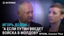 С Игорем Додоном корреспондентка Настоящего Времени встретилась в столице Словакии, куда он прилетел на Международную конференцию "Братислава – город мира", один из организаторов которой – Национальный исследовательский институт развития коммуникаций (НИИКР), созданный, по версии независимых российских расследовательских проектов, выходцами из КГБ, СВР и ФСБ. Там он говорил о необходимости отменить антироссийские санкции.