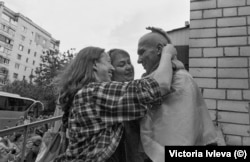 Из окна автобуса они видят радостную толпу встречающих: это все те, для кого война стала ощутимой на личном, частном уровне отдельной семьи – их родные мужчины ушли защищать Украину и пропали без вести или оказались в российском плену. Одни разворачивают огромные, чуть не в человеческий рост баннеры с именами и фотографиями сыновей, братьев, мужей, друзей, другие держат самодельные плакаты, а кто-то и просто тетрадные листы с фамилиями. Многие знакомы: принимают участие в постоянных акциях поддержки военнопленных - так они поддерживают и друг друга.