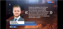 В этой же передаче сотрудники российского гостелевидения цитируют министра иностранных дел Литвы. Во фрагменте интервью Deutsche Welle, который переозвучили для "Вестей недели", Ландсбергис якобы говорит, что российских оппозиционеров, которые получили убежище в Литве, нужно отправить в Россию, чтобы они внутри страны попытались поменять режим своей численностью.
