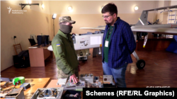 На видео, опубликованном Минобороны Украины на прошлой неделе, отчетливо видна ярко-оранжевая мини-камера, работающая в режиме реального времени, произведенная гонконгской компанией RunCam Technology. Документы, имеющиеся в распоряжении журналистов расследовательского проекта "Схемы", показывают, что украинская разведка также идентифицировала RunCam как производителя камеры, которая, вероятно, помогает в дистанционном наведении беспилотника.