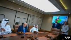 Трамп ответил на вопросы после встречи с эмиром Катара Тамимом бин Хамадом аль-Тани и премьер-министром Катара. Встреча с лидерами этой страны состоялась на борту самолёта Трампа, когда он пристал в Катаре для дозаправки. Обсуждалось в том числе будущее сектора Газа. Катар был одним из посредников при достижения действующего соглашения о прекращении огня.