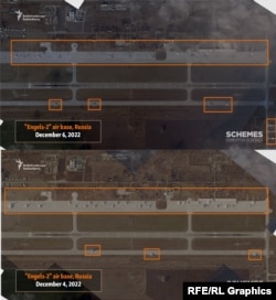 Радио Свобода сравнило спутниковые снимки сервиса Planet.com за 4 и 6 декабря, сделанные в районе аэродрома Энгельс-2. Они подтверждают, что в результате удара, нанесенного, как утверждает Минобороны РФ, беспилотником "Стриж" советского производства, как минимум один стратегический бомбардировщик Ту-95 мог быть поврежден. Под ним видны следы пены, которая используется для тушения пожаров, также на месте на снимке 6 декабря присутствуют несколько пожарных машин.